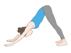 ヨガのダウンドッグでは、手で床を押し込むというよりも、